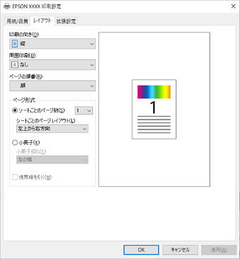 複数ページのデータを、最初のページか最後のページから印刷するかを選択します。[逆]を選択するとページ順に仕上がります。