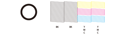 ![]() 全てのラインが印刷されている場合は、目詰まりしていません。画面の説明に従って終了してください。