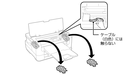キャリッジ(インクカートリッジセット部)横のケーブル(白色)には絶対に触らないでください。