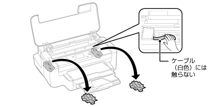 キャリッジ(インクカートリッジセット部)横のケーブル(白色)には絶対に触らないでください。