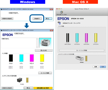 Mac OS Xでは「Epson Printer Utility」を表示します。