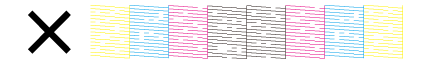 ノズルチェックパターンの全てのラインが印刷されるまで、ノズルチェックとヘッドクリーニングを繰り返してください。