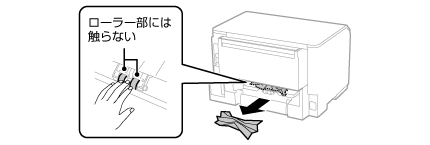 用紙はゆっくりと引き抜いてください。勢いよく引っ張ると、本製品が故障することがあります。