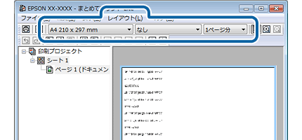 [まとめてプリントLite]画面の[レイアウト]メニューまたはレイアウトツールバーで、用紙サイズ、片面/両面、割り付けなどを設定します。