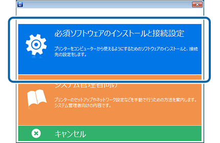 [必須ソフトウェアのインストールと接続設定]をクリックします。