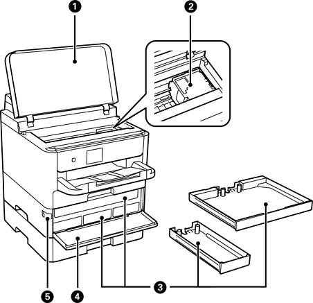 詰まった用紙を取り除くときに開けます。 |