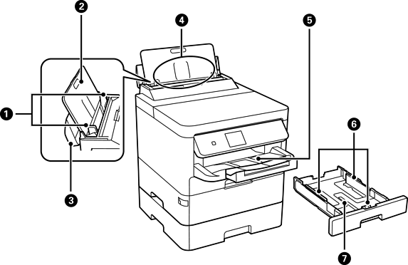 用紙をまっすぐ送るためのガイドです。用紙の側面に合わせてください。 |