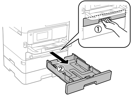 プリンターが動作していないことを確認して、用紙カセットを引き抜きます。