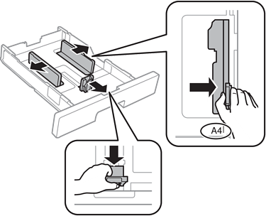 2. 手前の用紙ガイドはいっぱいまで広げて、左右の用紙ガイドはセットする印刷用紙のサイズに合わせます。