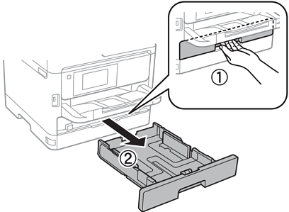 1. プリンターが動作していないことを確認して、用紙カセットを引き抜きます。
