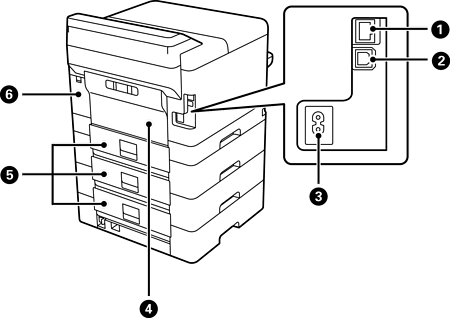 給紙ローラーの交換や内部に詰まった用紙を取り除くときに開けます。