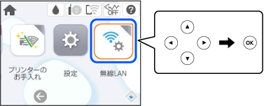 1 ホーム画面から[無線LAN]を選択し、OKボタンを押してください。