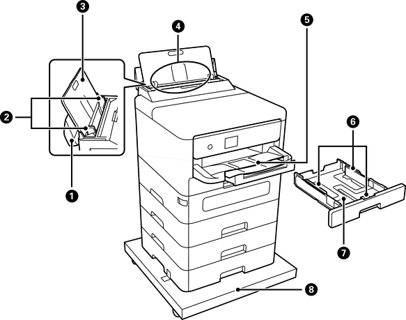排紙された用紙を保持します。手で引き出し、収納も手で押して戻してください。 |