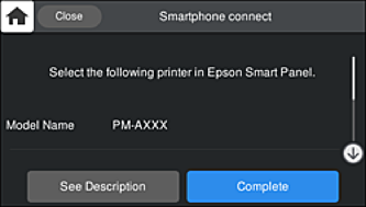 Epson Smart Panel पर, स्मार्ट डिवाइस के चालू होने पर प्रिंटर स्वतः उससे कनेक्ट हो जाता है।