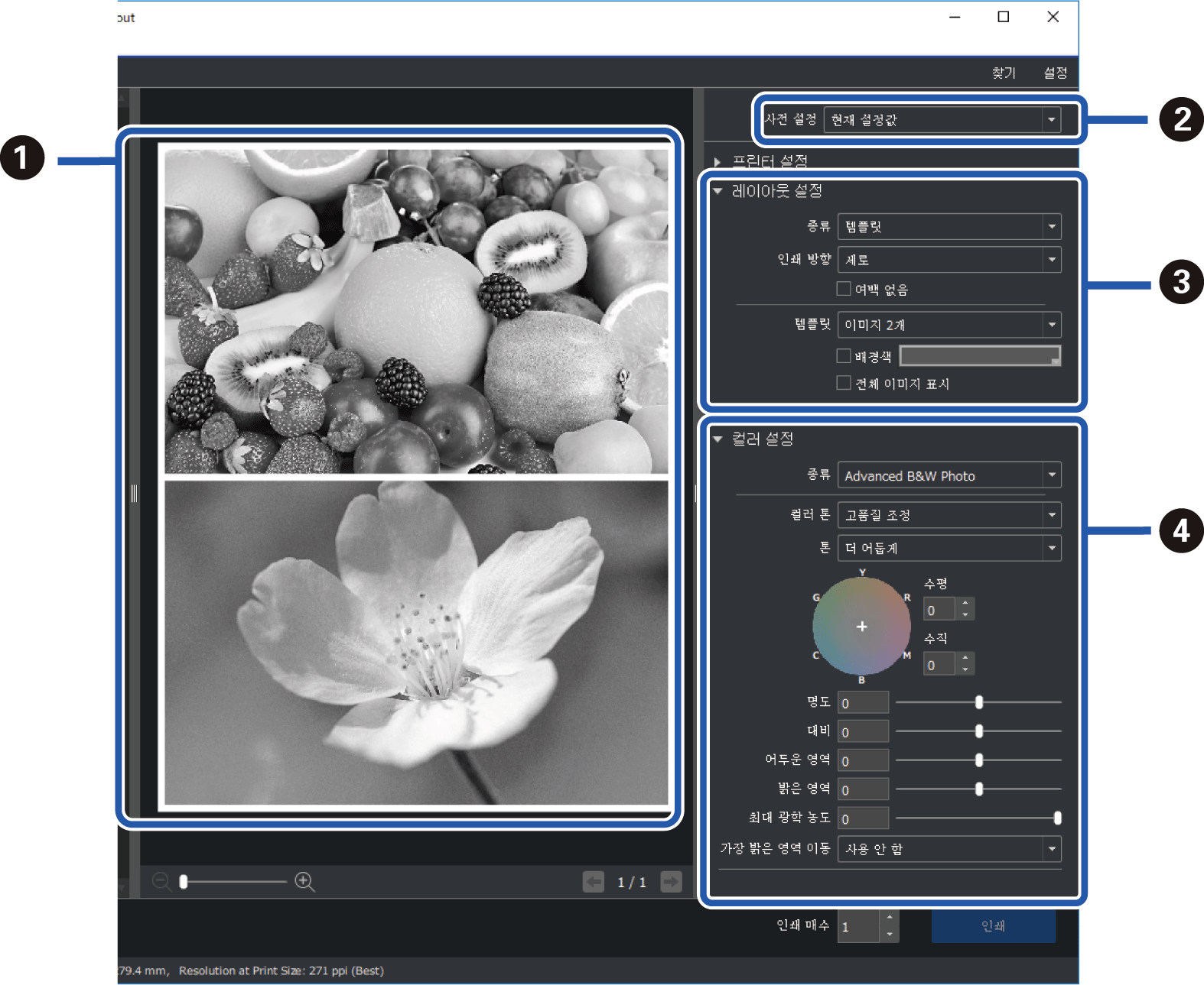 인쇄하기 전에 선택한 설정을 사용하여 인쇄 결과를 확인 하십시오. |