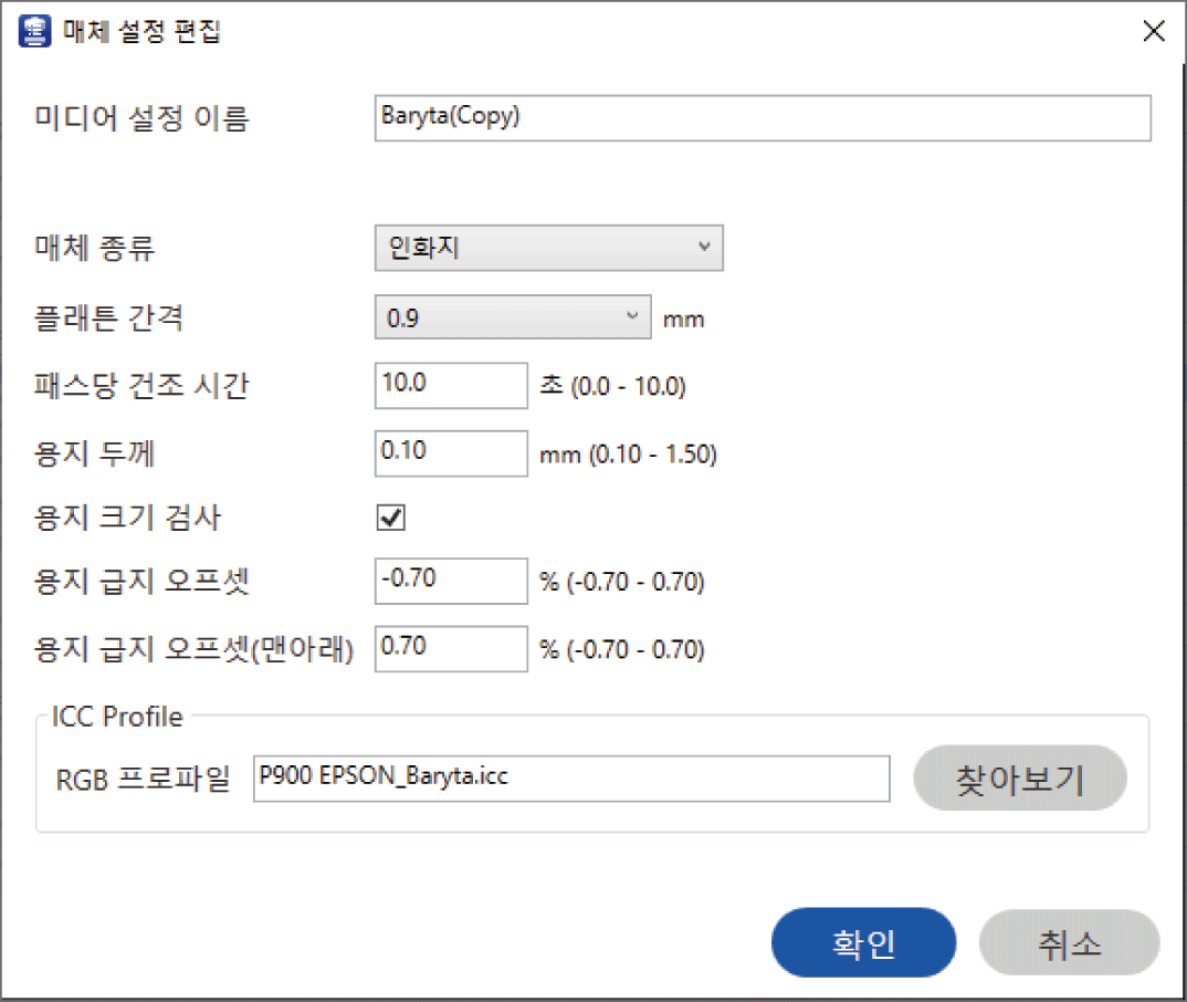 다른 용지 종류에 대한 ICC 프로파일을 지정할 수 있습니다. |