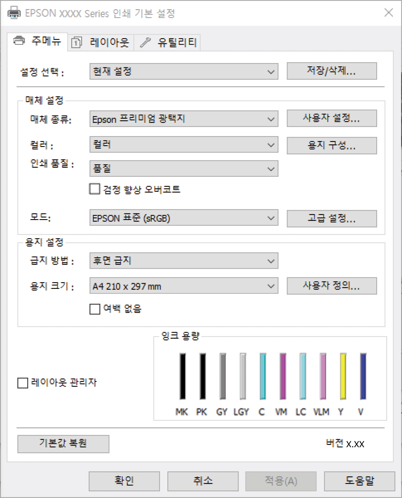 자세한 내용은 프린터 드라이버의 메뉴 옵션을 참조하십시오.