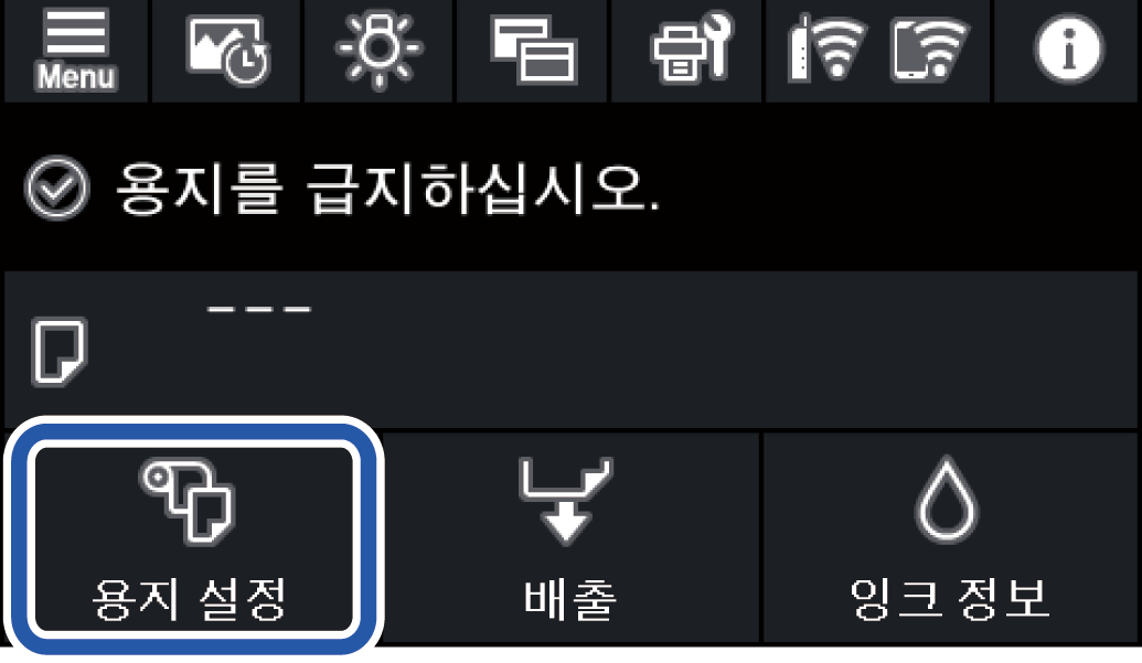 프린터 제어판에서 용지 설정을 선택하십시오.