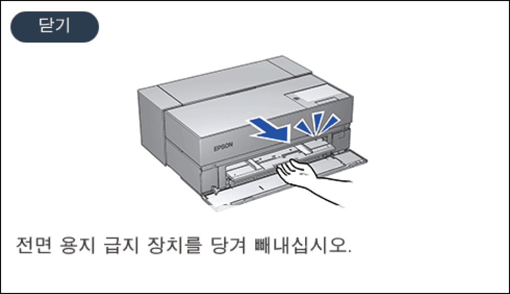 화면에 재생되는 애니메이션을 참조하여 전면 용지 급지 장치를 당겨 빼냅니다.
