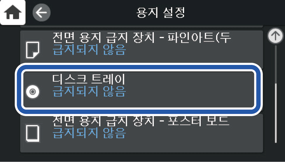프린터와 함께 제공된 디스크 트레이를 사용하십시오. 다른 트레이를 사용하면 프린터, 트레이 또는 디스크가 손상되거나 프린터가 오작동할 수 있습니다.