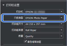 在 Epson Print Layout 或打印机驱动程序的打印纸类型设置中选择目标打印纸,然后打印。