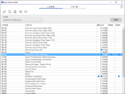 要重新注册打印纸信息,请启动 Epson Media Installer,然后选择介质管理 > 刷新