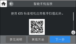 请使用 iOS 11 或更高版本的“相机”应用程序。无法使用 iOS 10 或更低版本的“相机”应用程序连接到本产品。此外,也无法使用用于扫描二维码的应用程序进行连接。如果无法连接,请在本产品的操作面板上选择其他方法。有关进行连接的详细信息,请参见下面的相关信息链接。