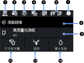 显示打印机状态屏幕。显示的数字表示通知数量。 |