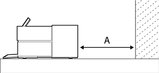Keď sa papier vkladá z predného podávača papiera, vysúva sa zo zadnej strany tlačiarne. Medzi zadnou časťou tlačiarne a najbližšou stenou ponechajte medzeru (A), ako je to znázornené na obrázku.