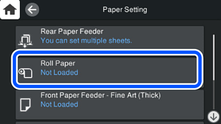 หน้าจอการตั้งค่ากระดาษจะแสดงขึ้นมาบนแผงควบคุมของเครื่องพิมพ์