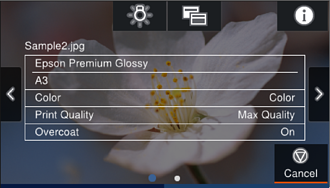 يعرض إعدادات الطباعة باستخدام برنامج تشغيل الطابعة وEpson Print Layout.