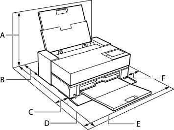 *2: Bila Anda memasukkan kertas ke dalam pengumpan kertas depan, beri jarak lebih dari 330 mm, dan bila Anda memasukkan kertas rol, beri jarak lebih dari 164 mm di belakang printer.
