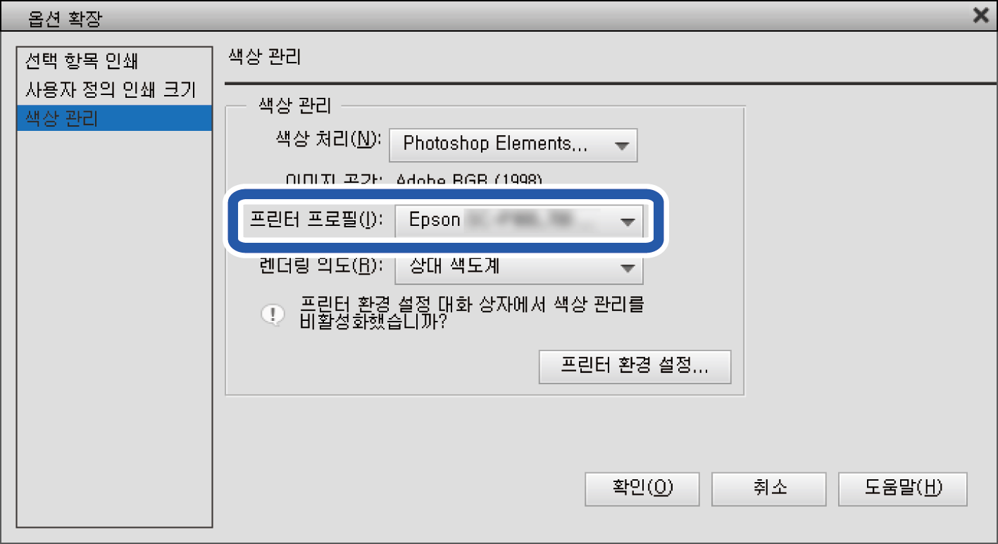 용지 정보를 추가 한 경우 Epson Print Layout, 프린터 드라이버 및 기타 응용 프로그램에서 추가 된 용지의 ICC 프로파일을 사용할 수 있습니다.