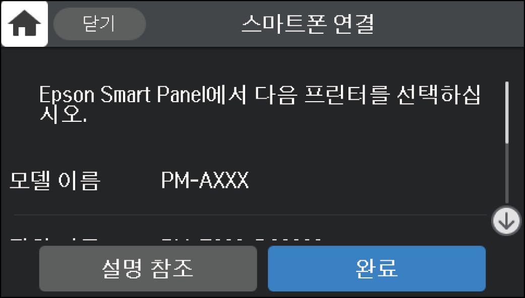 Epson Smart Panel에서 스마트 장치는 프린터가 시작될 때 자동으로 프린터에 연결됩니다.