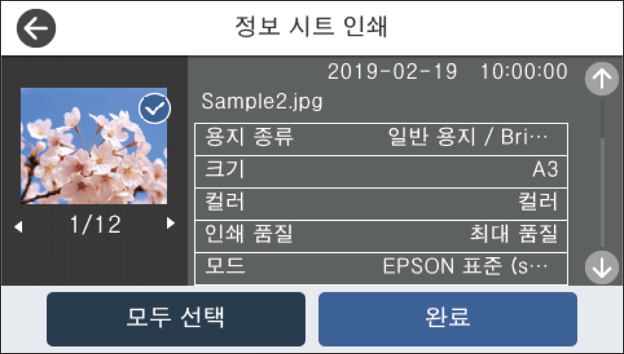 완료를 선택한 후 다음 화면에서 인쇄를 시작하십시오.