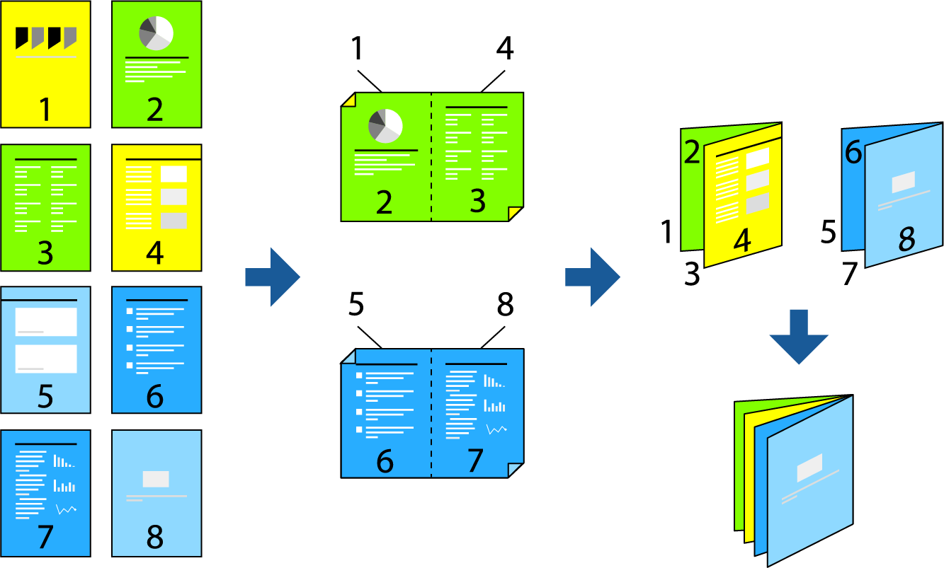 페이지 순서를 바꾸고 인쇄물을 접어서 만들 수 있는 소책자를 인쇄할 수도 있습니다.