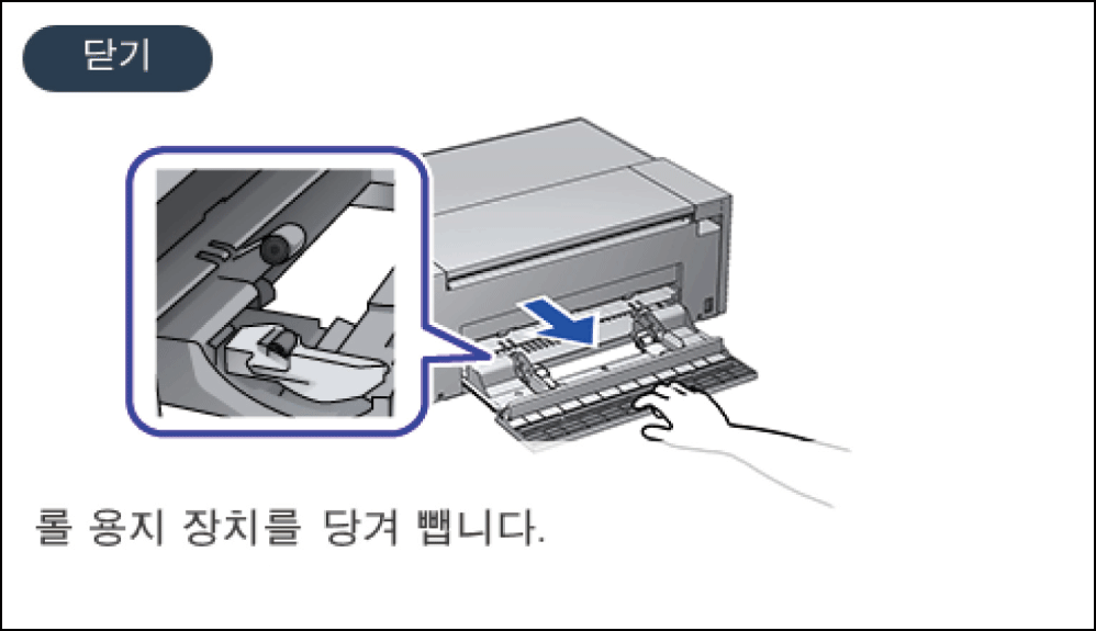 화면에 표시된 애니메이션을 참조하여 롤 용지를 넣습니다.