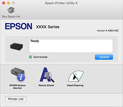Pode executar uma função de manutenção, como a verificação dos jactos e a limpeza da cabeça de impressão e, se iniciar o EPSON Status Monitor, pode verificar o estado da impressora e informações sobre erros.