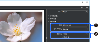 从类型中选择使用 ICC 特性。从输出 ICC 特性中选择自动选择时,步骤 2 中选择的打印纸的 ICC 特性会自动设置。 |