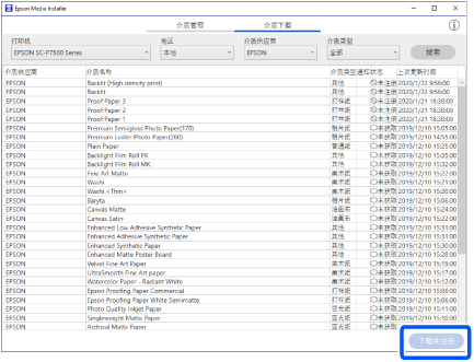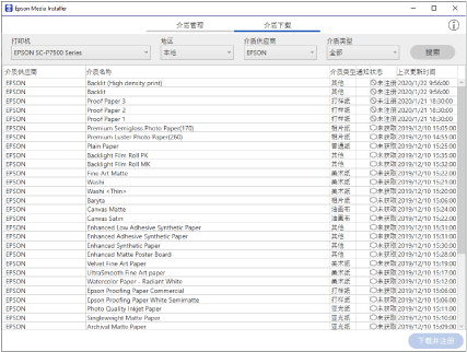 要重新注册打印纸信息,请启动 Epson Media Installer,然后选择介质管理 > 刷新