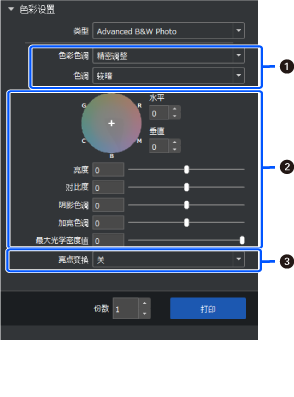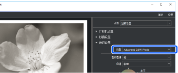 Advanced B&W Photo (高级黑白照片)也可能不显示,具体取决于打印机设置的介质类型中选择的打印纸。