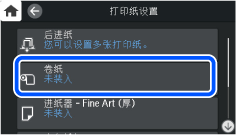 此时操作面板上将显示打印纸设置屏幕。