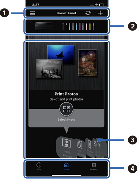 Epson Smart Panel pokrenite sa svog pametnog uređaja i sa početnog ekrana izaberite stavku koju želite da koristite.