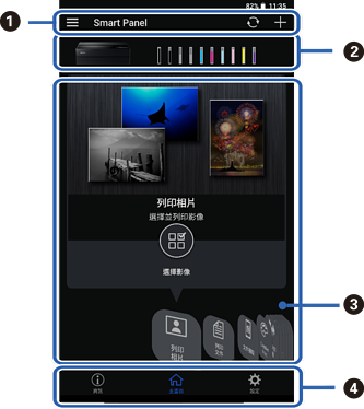 從智慧型裝置啟動 Epson Smart Panel,並從主畫面選取您要使用的項目。