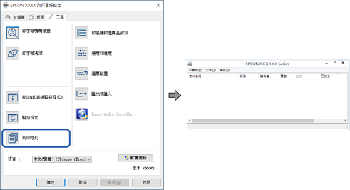在印表機驅動程式的 [工具] 索引標籤上按下 [列印佇列]。