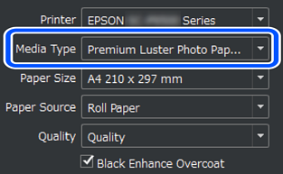 Виберіть цільовий папір у налаштуваннях типу паперу у програмі Epson Print Layout або драйвері принтера, а потім виконайте друк.