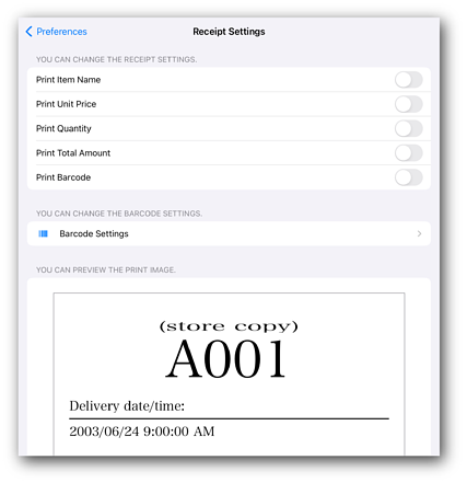 Tap Receipt Settings > Preferences to return to the preferences screen.