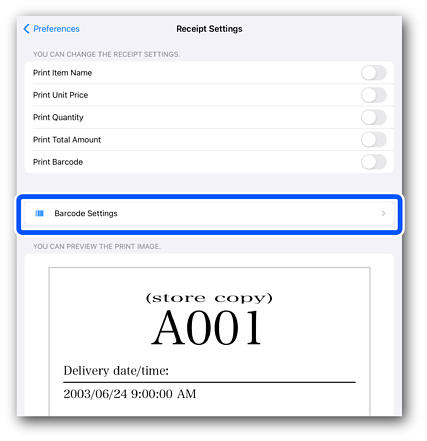 You can check the settings by tapping Receipt Settings to return to the receipt settings screen and view the preview.