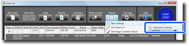 Click Settings on the Order List screen, and then click Basic Settings > Application Settings.