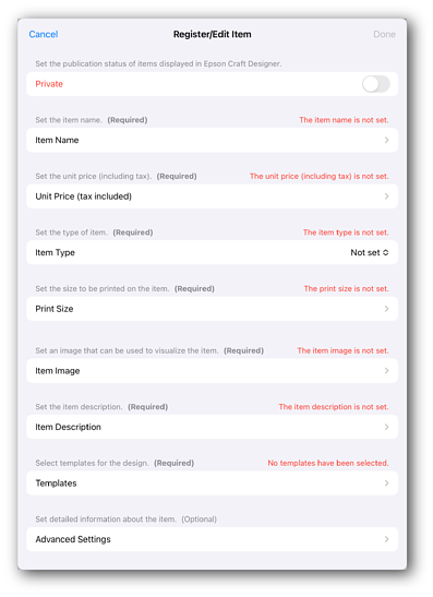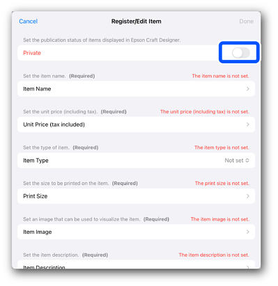 Set the item's publication settings to Private to prevent the registered item from being accidentally displayed on the order screen.